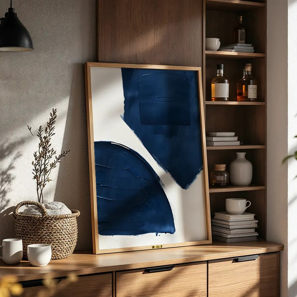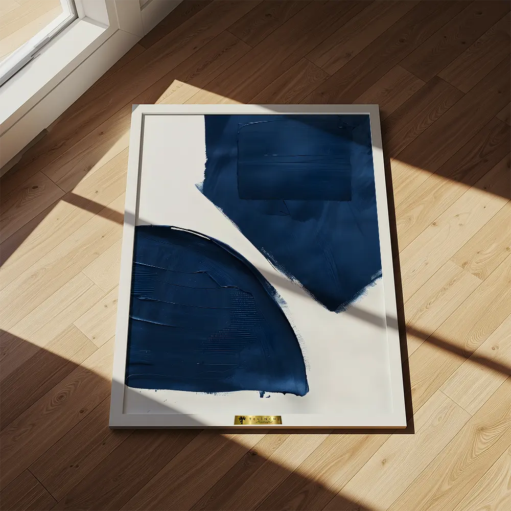 Bold, abstract strokes of blue inspire a sense of tranquility and open possibilities.
