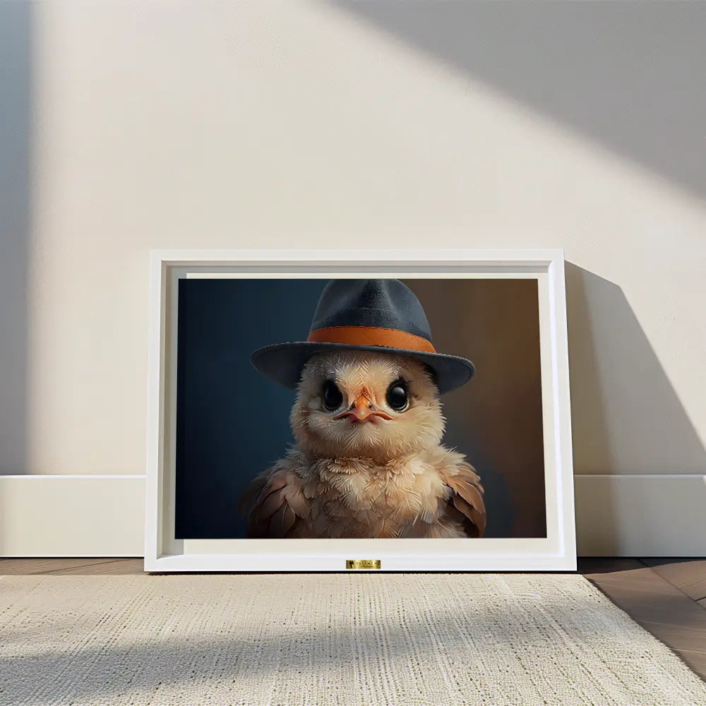 A charming bird donning a stylish hat, radiating personality and whimsical charm.