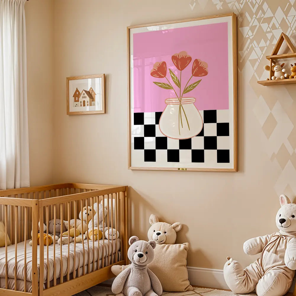 Bright and cheerful florals in a simplistic vase, creating a lighthearted and kid-friendly vibe.