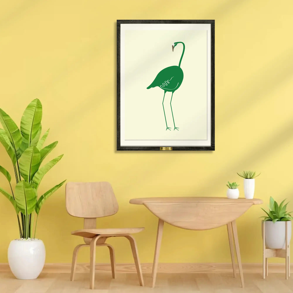 A minimalist depiction of a crane in striking emerald green, exuding grace and simplicity.