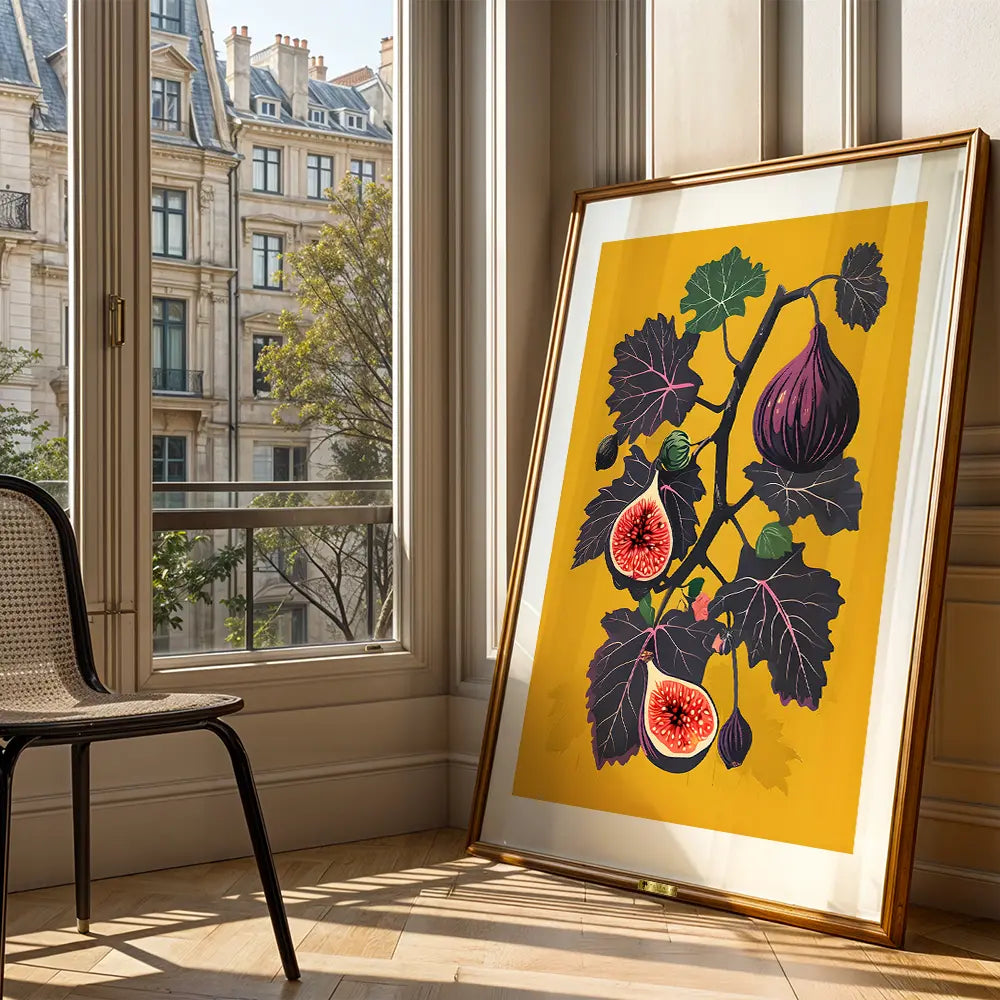 A playful depiction of figs bursting with color, perfect for energizing your space.