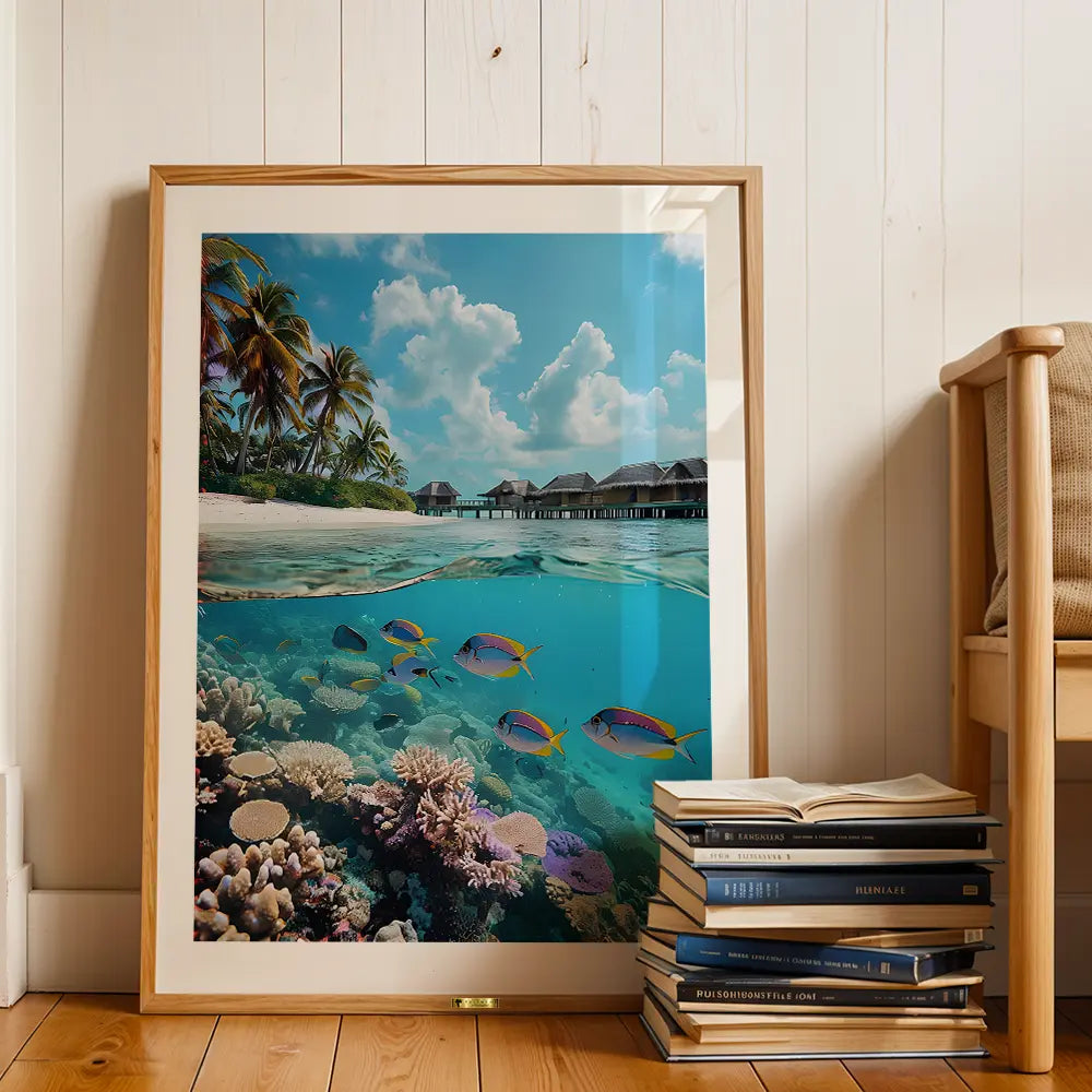 A stunning coral reef teeming with colorful fish, blending nature’s artistry.