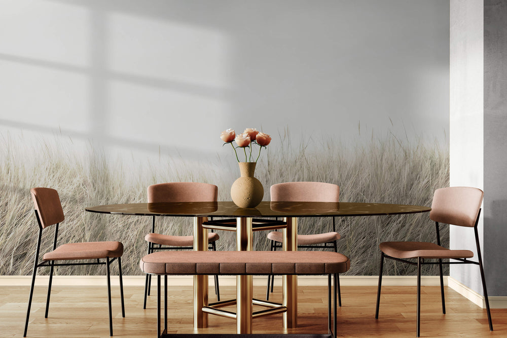 Golden-brown grass sways gently in the wind, offering quiet elegance and peace.