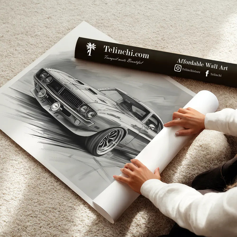 A sleek vintage car in monochrome, capturing timeless elegance and speed.