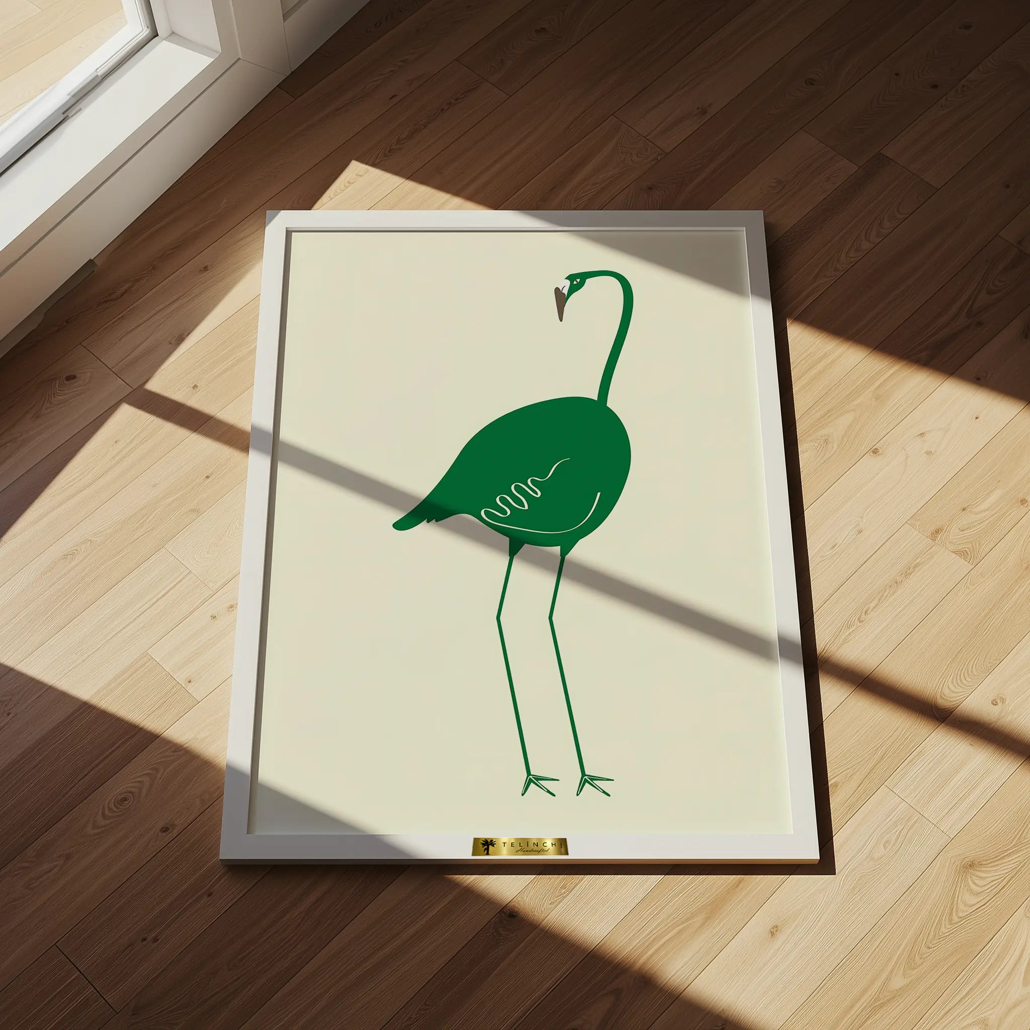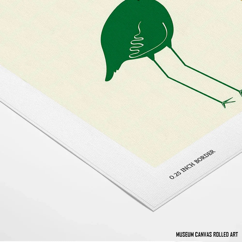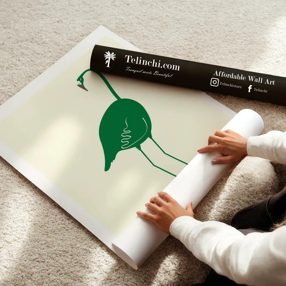A minimalist depiction of a crane in striking emerald green, exuding grace and simplicity.