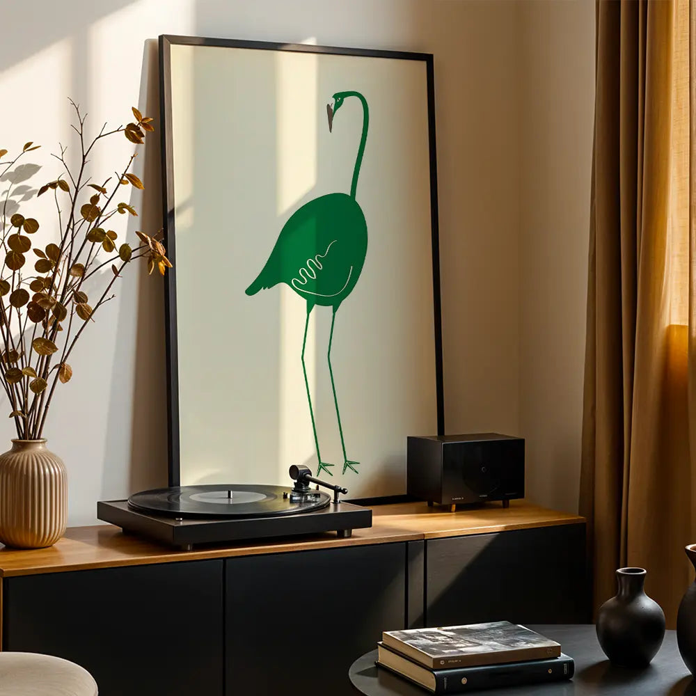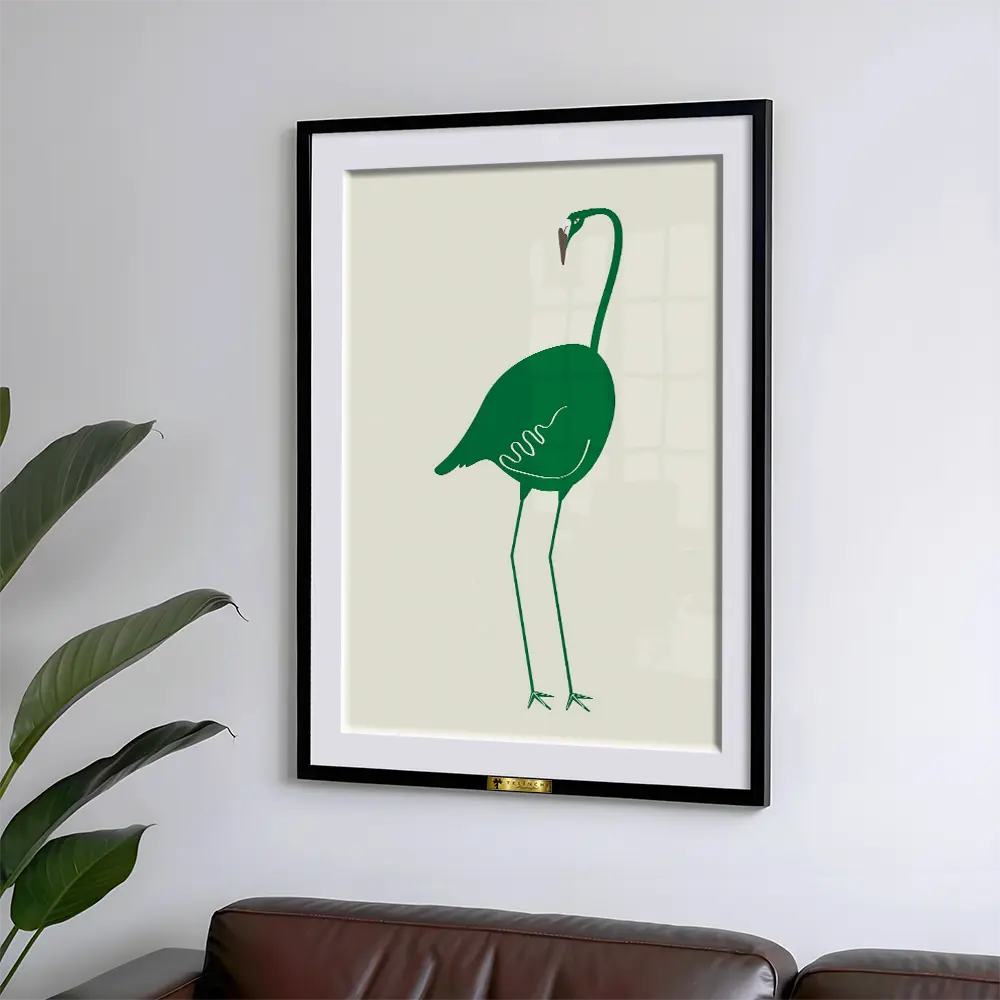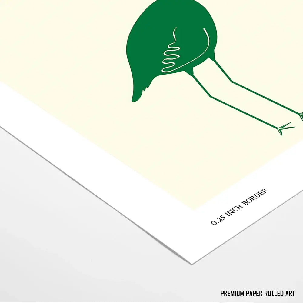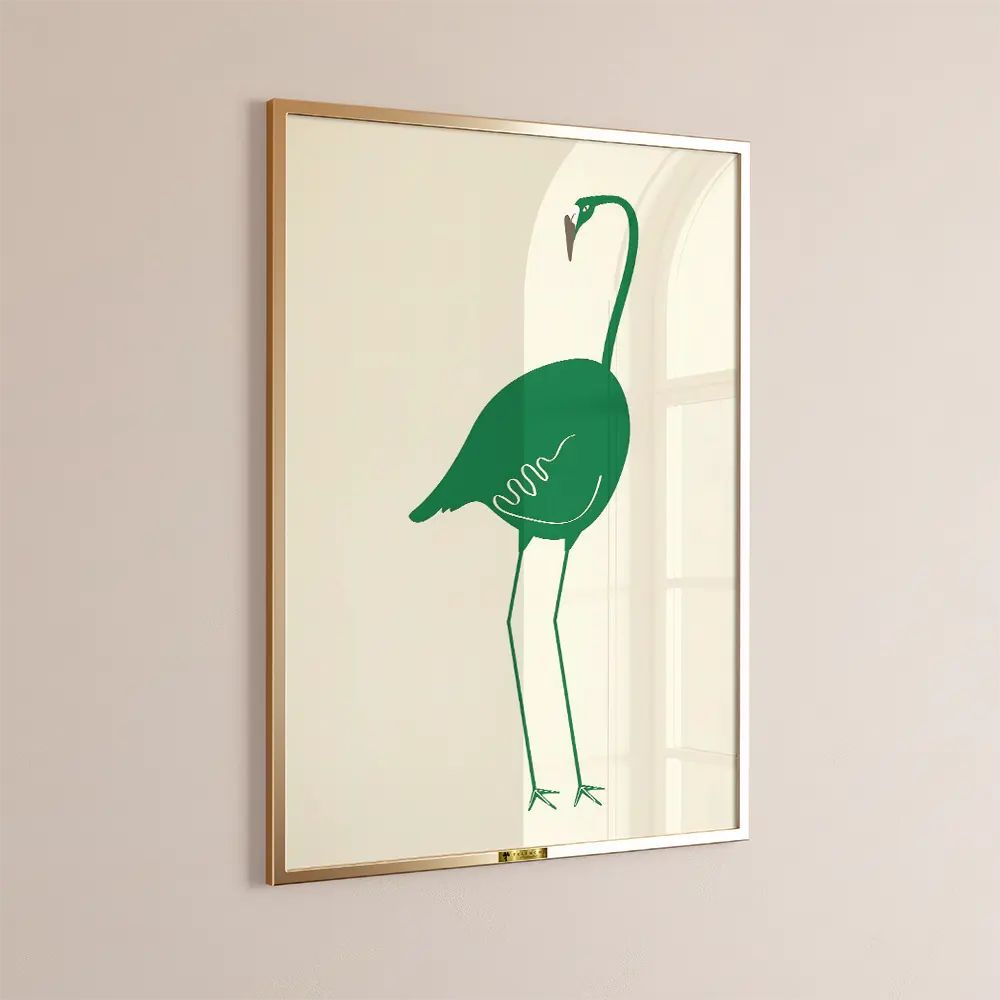 A minimalist depiction of a crane in striking emerald green, exuding grace and simplicity.