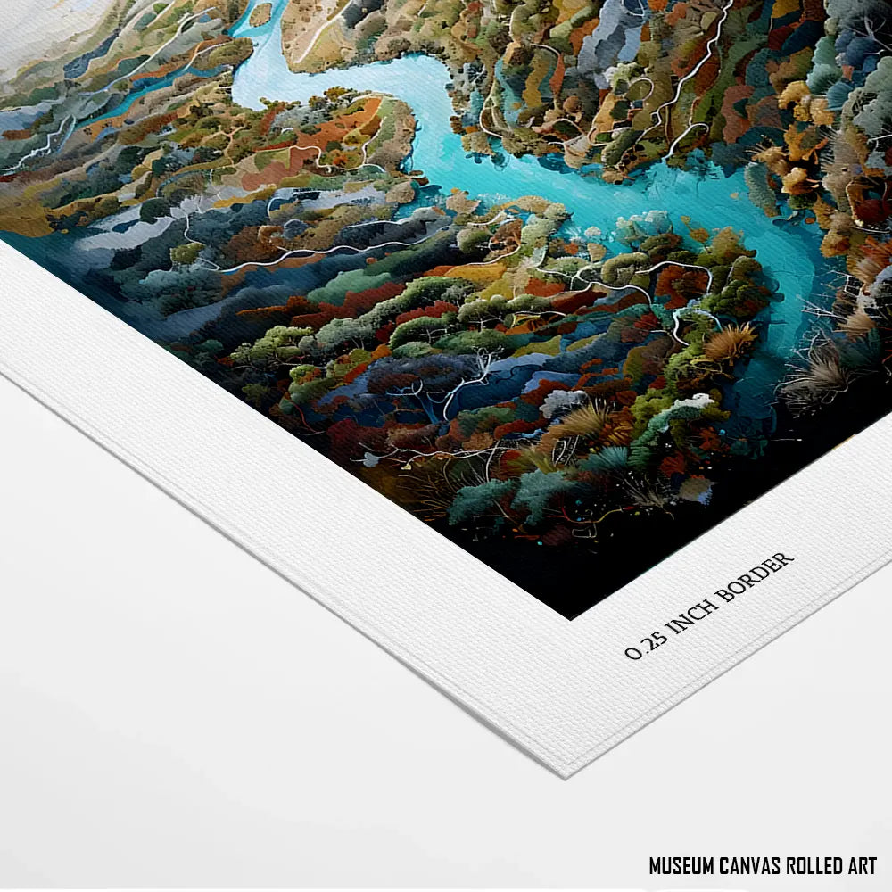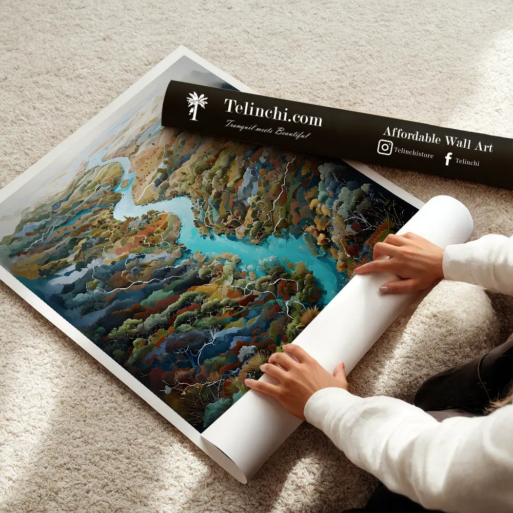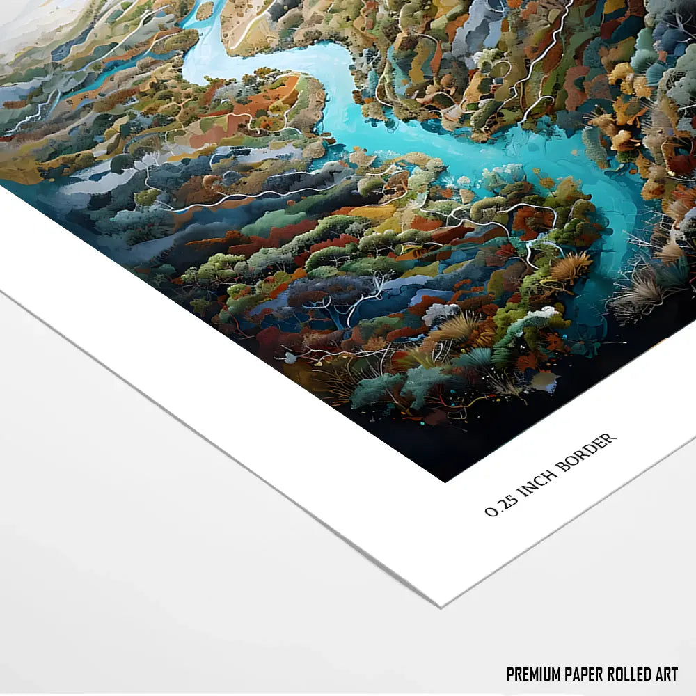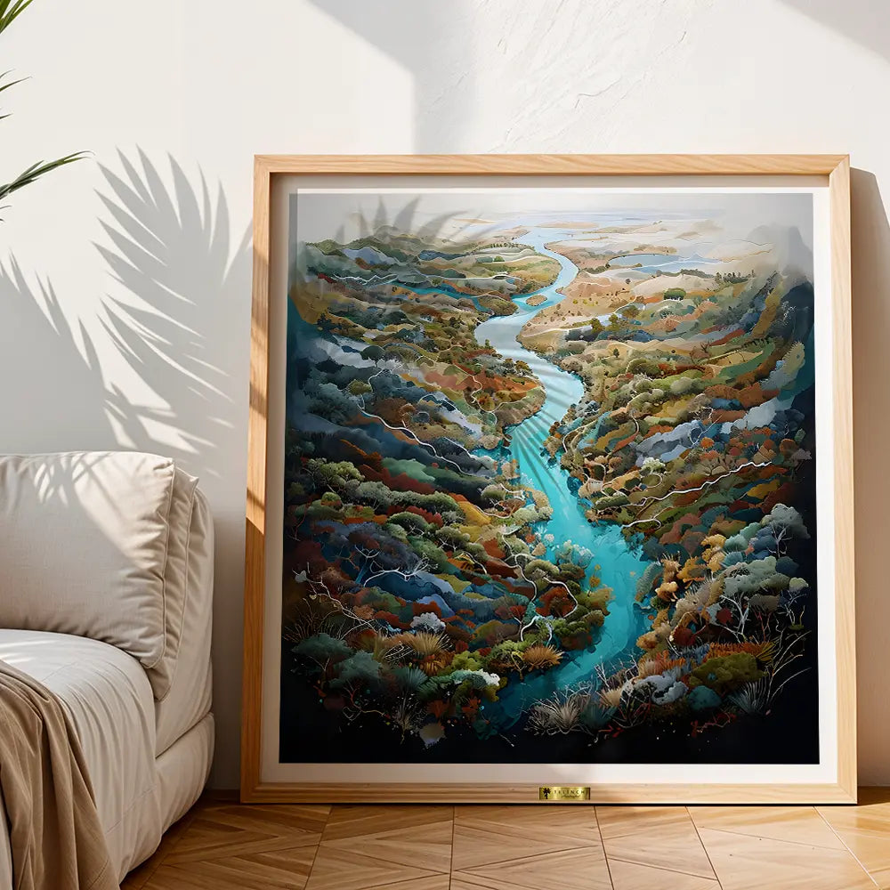 A majestic river winding through colorful landscapes, capturing the beauty of nature in motion.