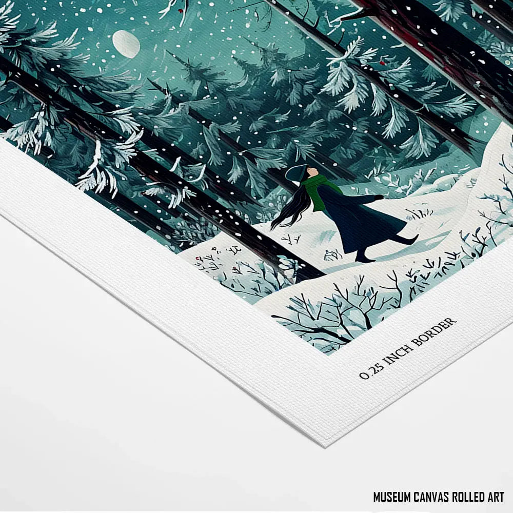 A serene winter forest scene inviting a quiet walk through snow-covered beauty.