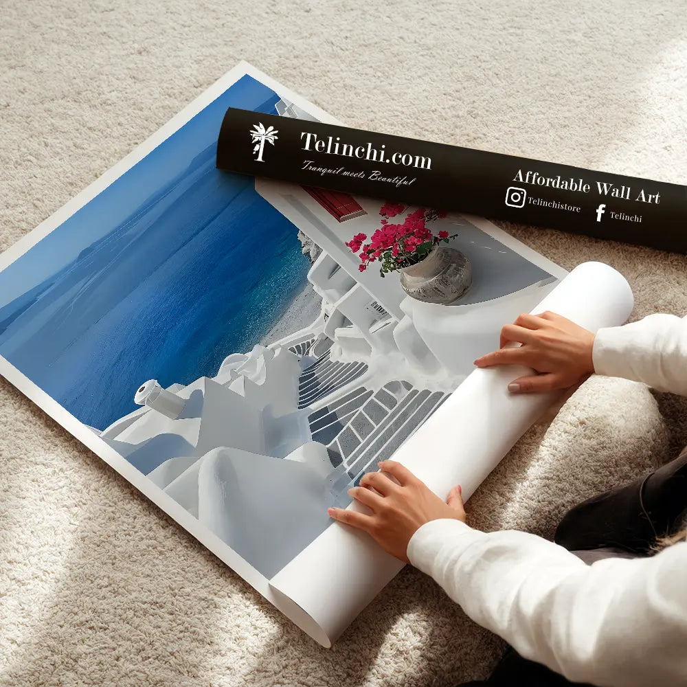 Iconic Santorini views with pristine blues and whites.