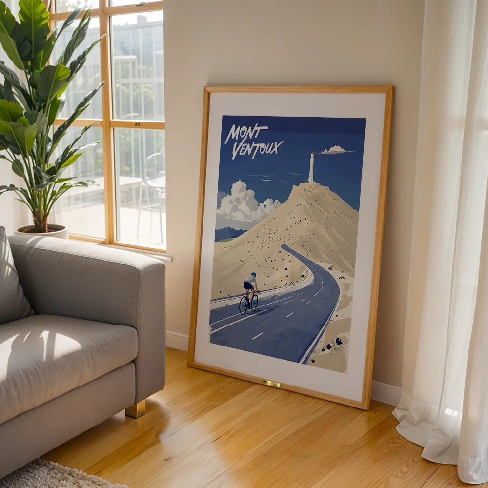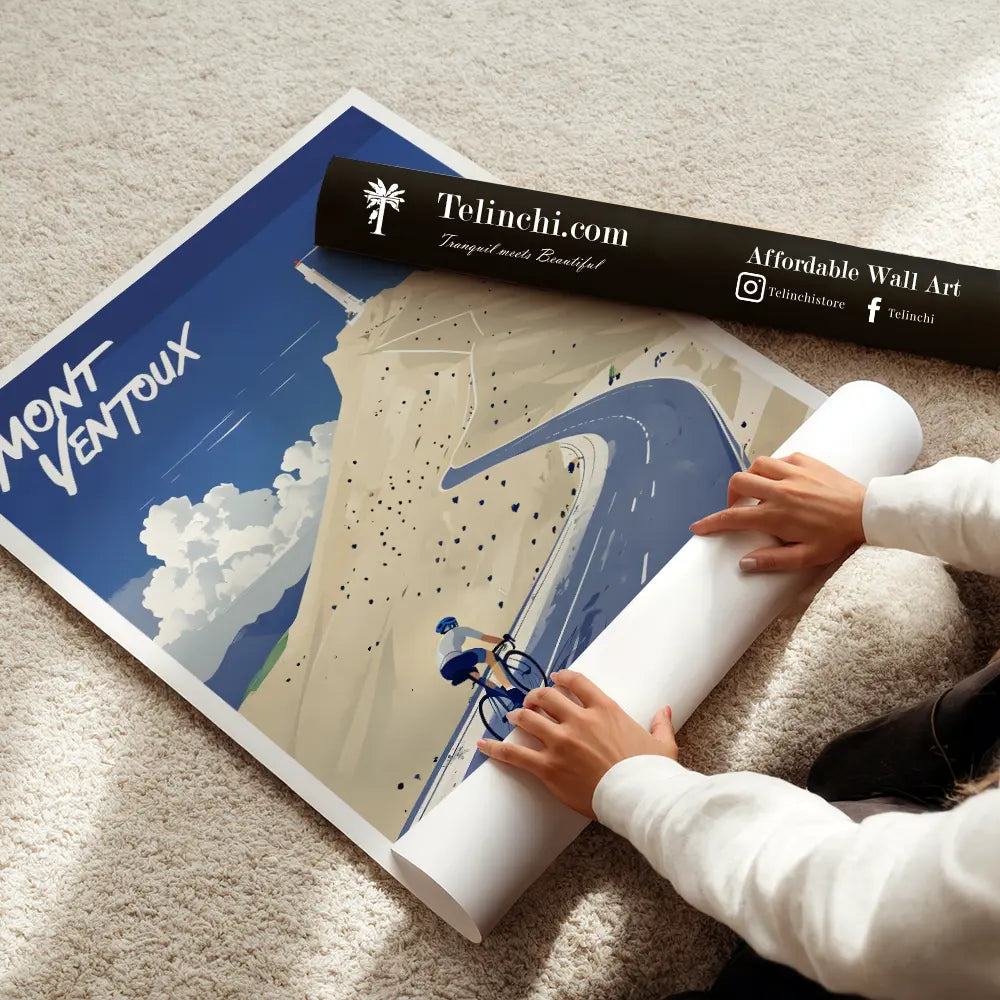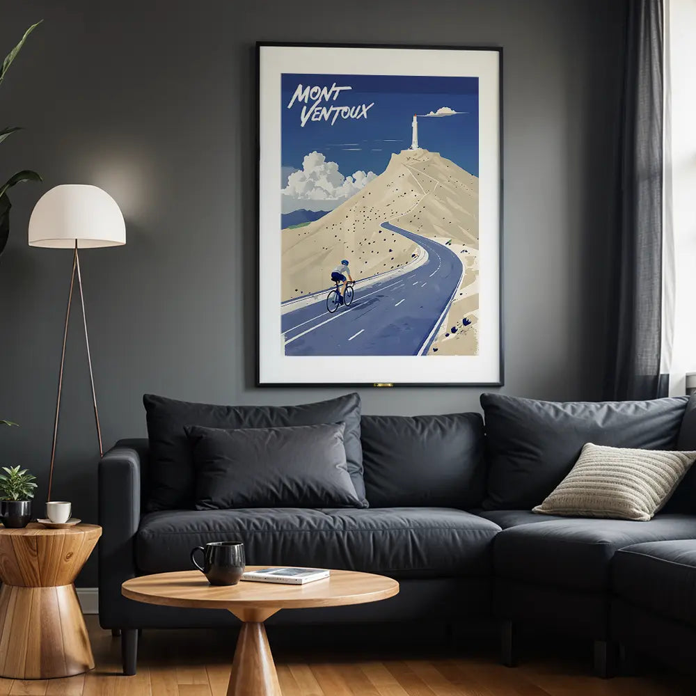 A cyclist conquering Mont Ventoux against a stunning backdrop.