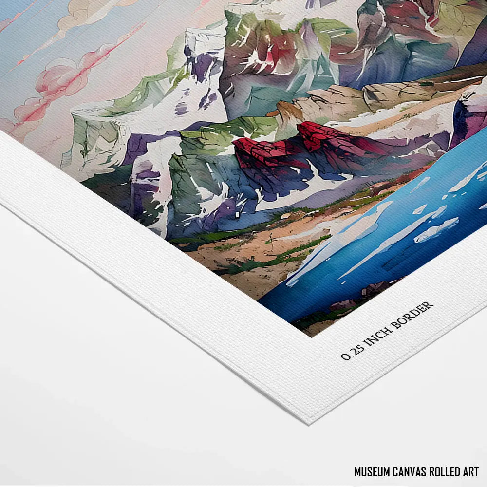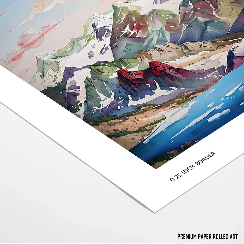 Snow capped peaks reflecting in a tranquil glacial lake, a perfect retreat for the soul.