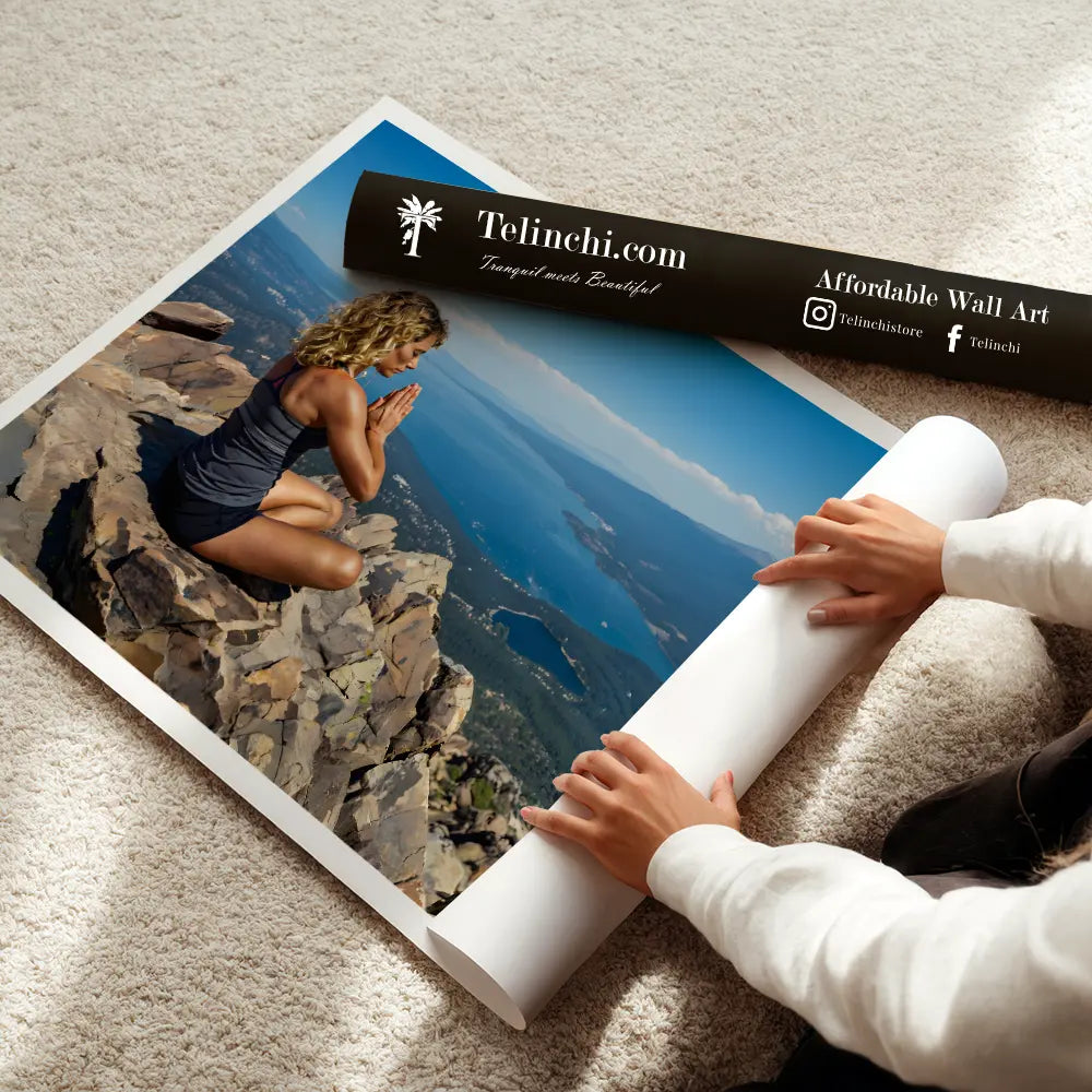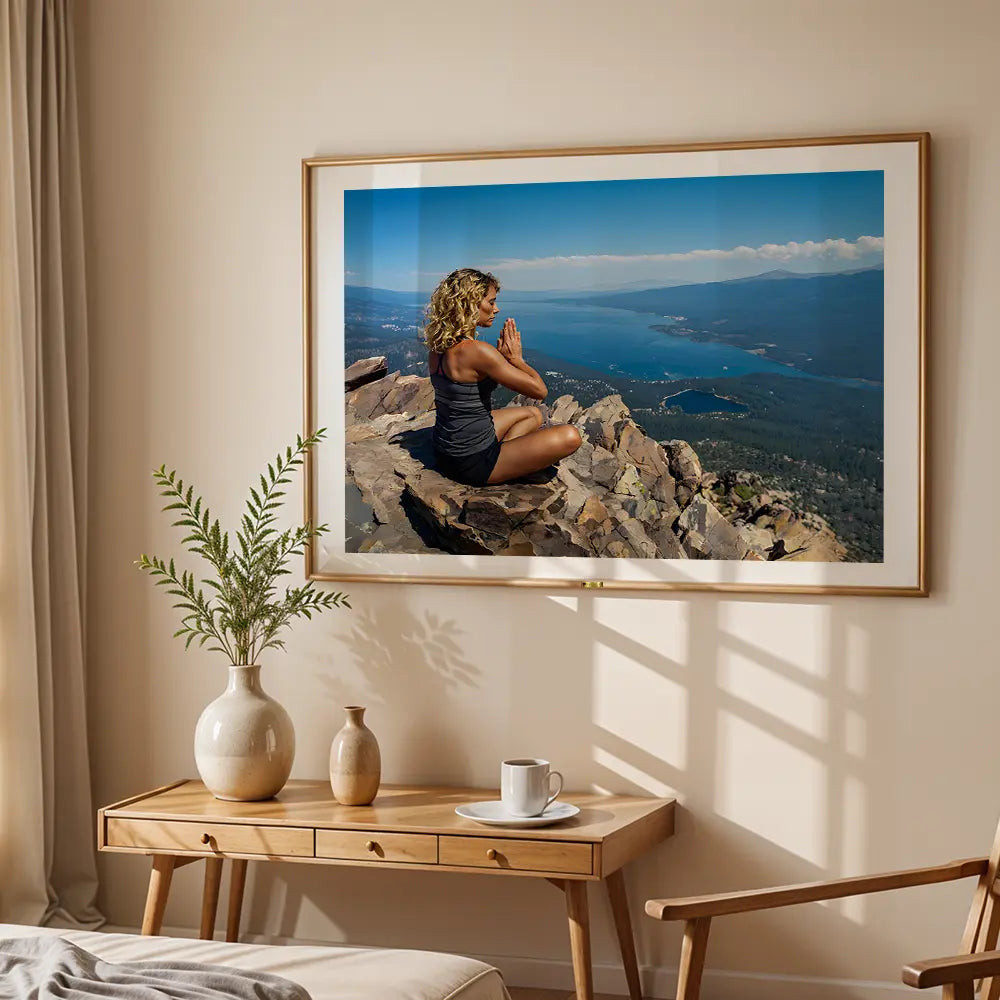 A calm meditation moment on a mountaintop with endless views of peace.