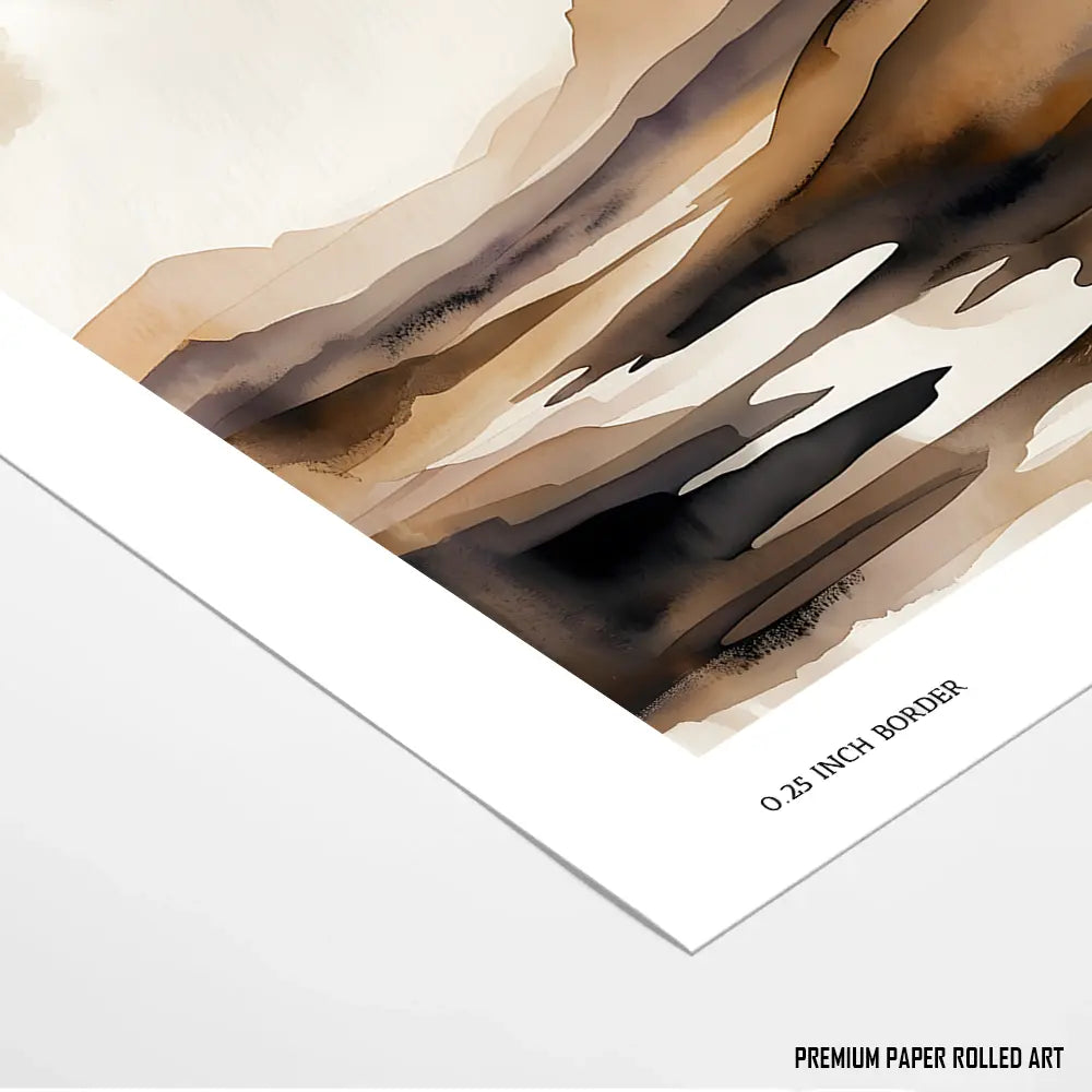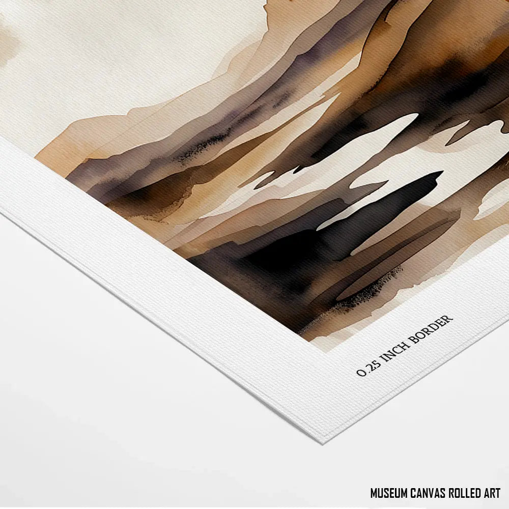 Layers of mountainous hues blend for a tranquil yet reflective mood.