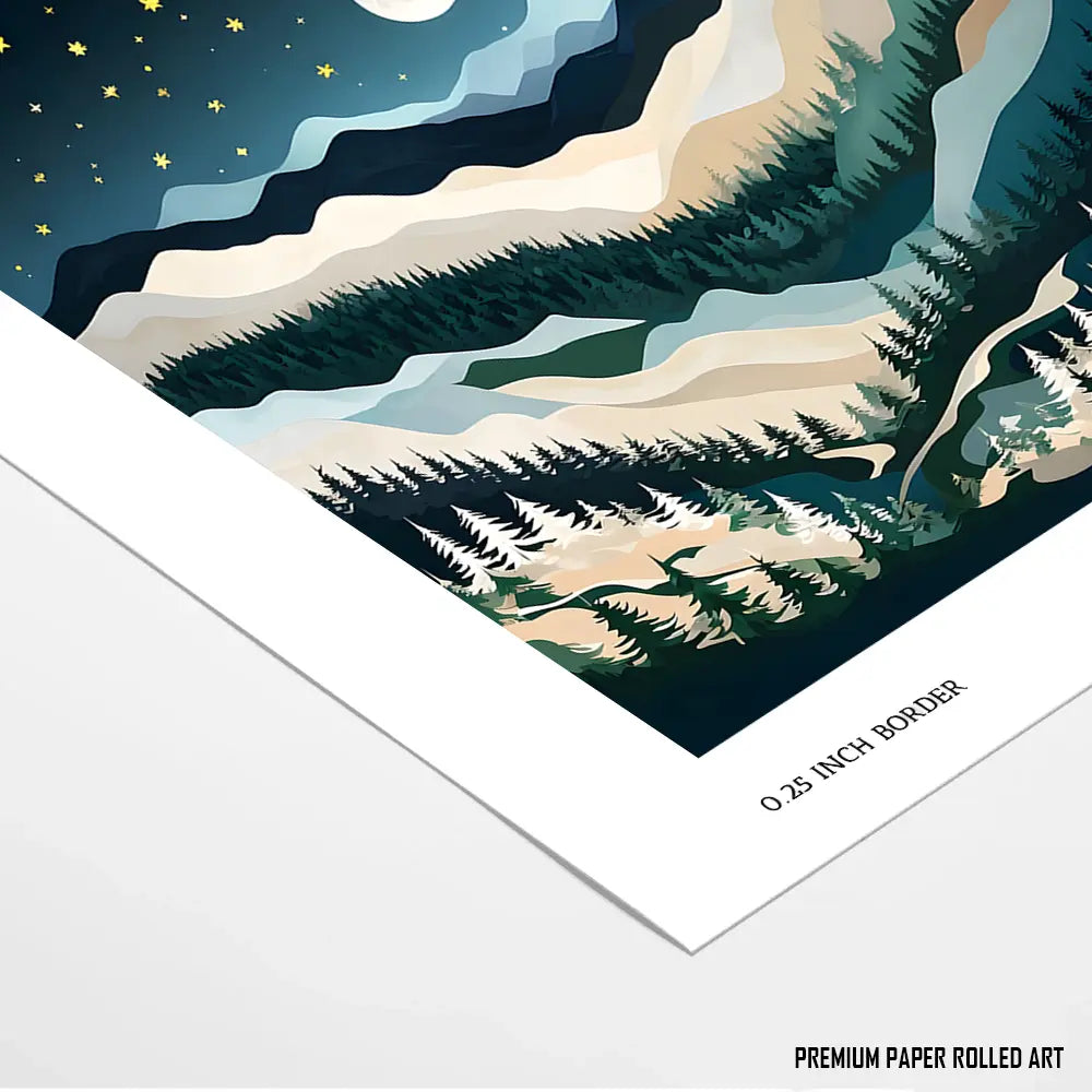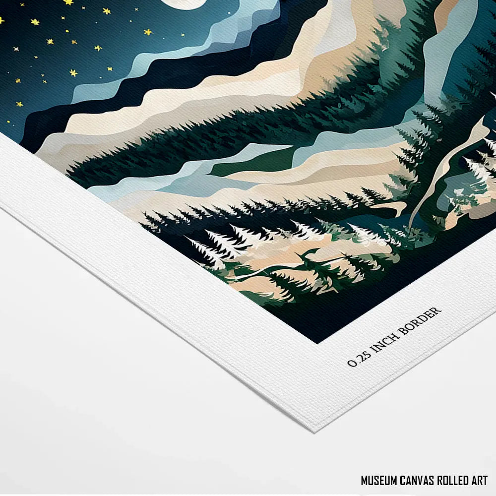 Towering peaks and starry skies blend into a breathtaking, tranquil scene.