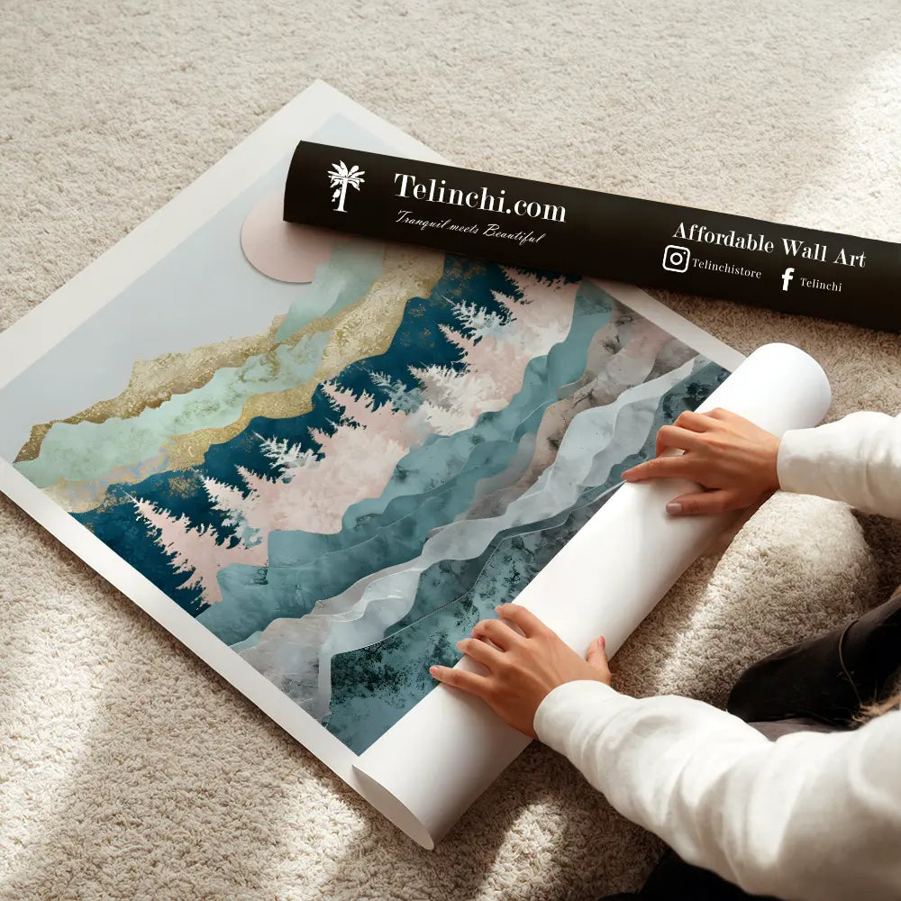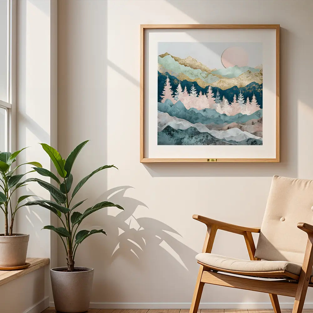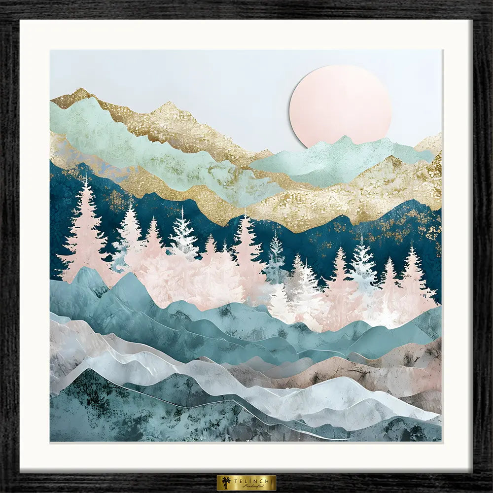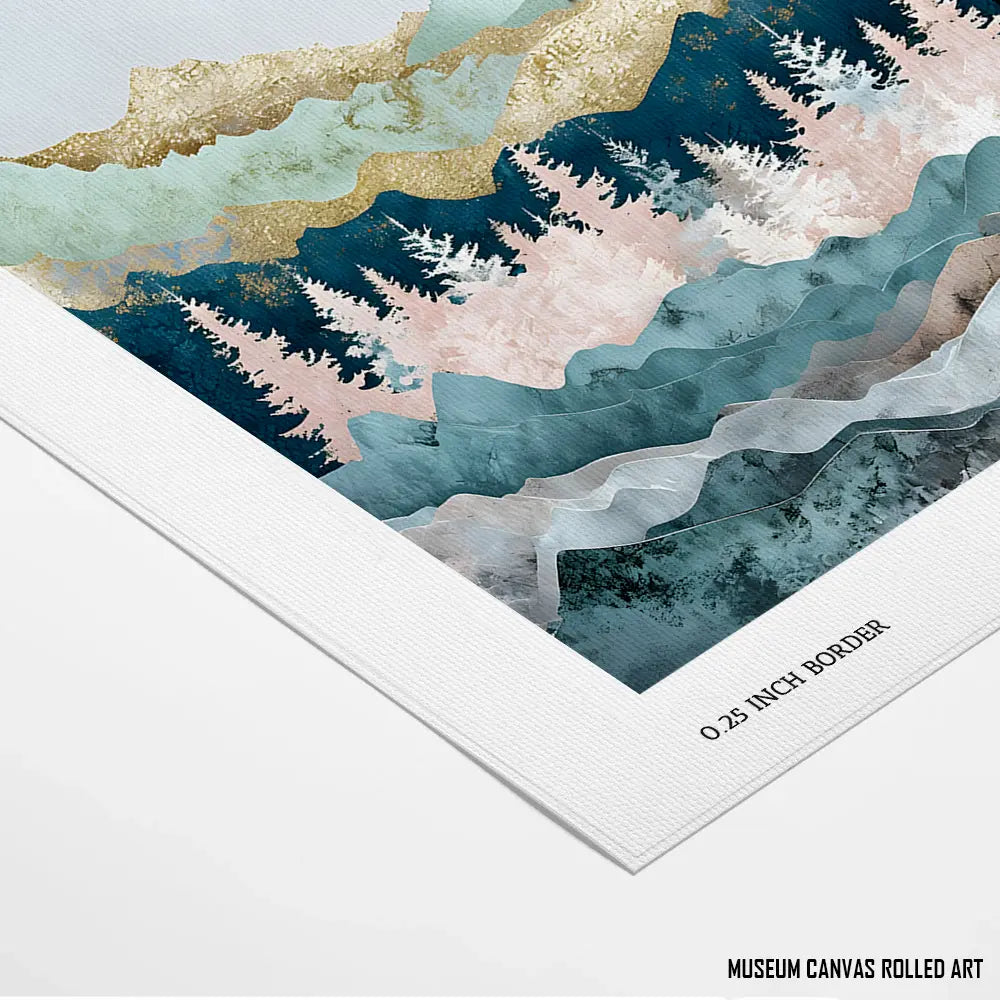 Soft pastel layers of mountains and forests bring calm and joy to any space.
