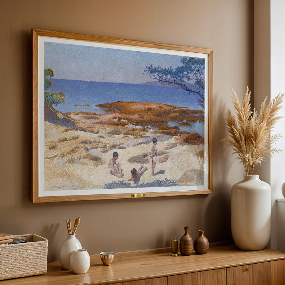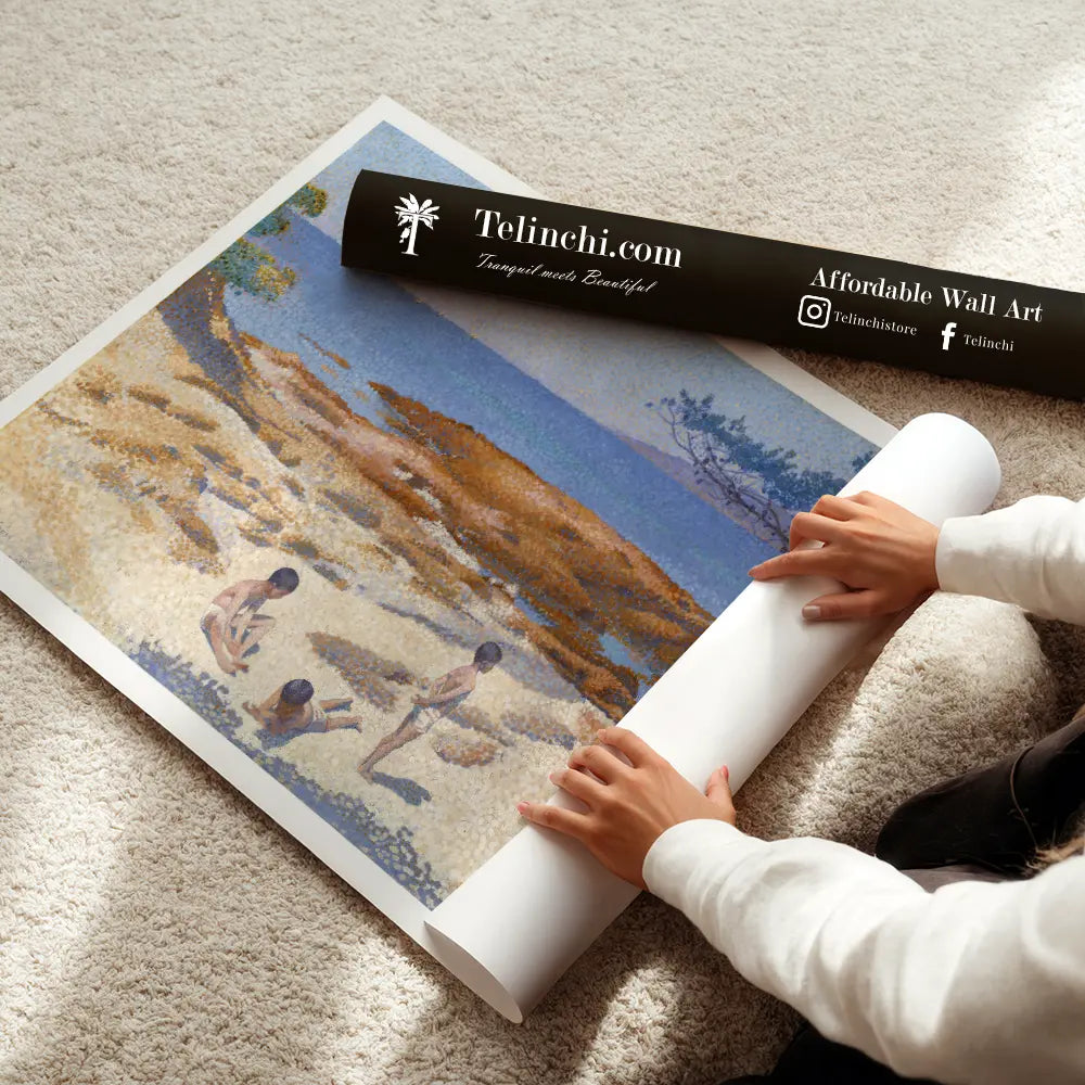 It's a beautiful example of Neo-Impressionist style, characterized by the use of small dots of color to create a sense of light and movement.