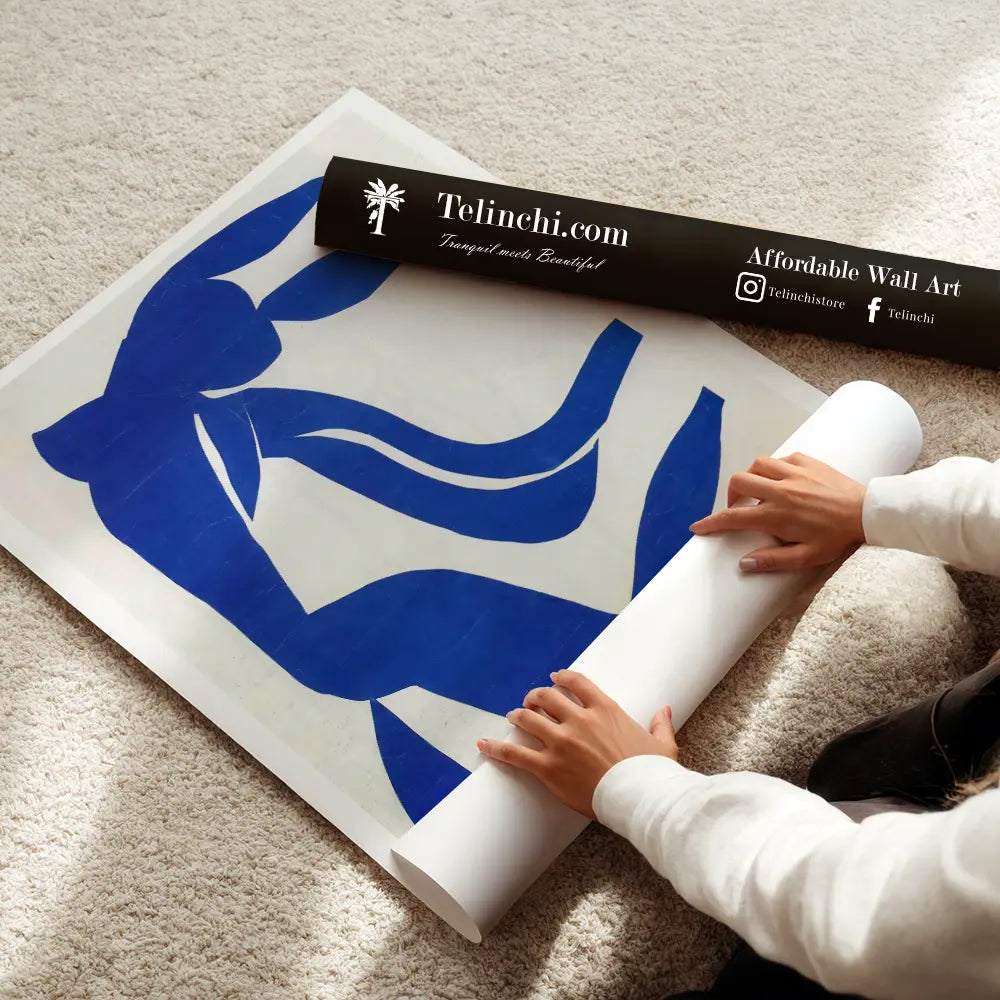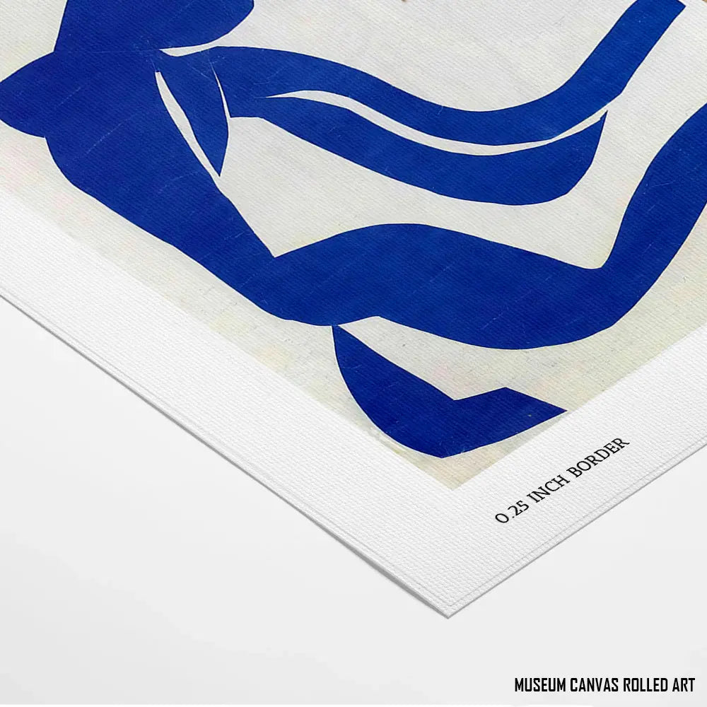 Matisse's Blue Nude II is a celebrated piece created using his cut-out technique. The bold blue figure represents both grace and power in its fluid, minimalistic form. It’s a vibrant celebration of form and color, emphasizing motion and femininity.