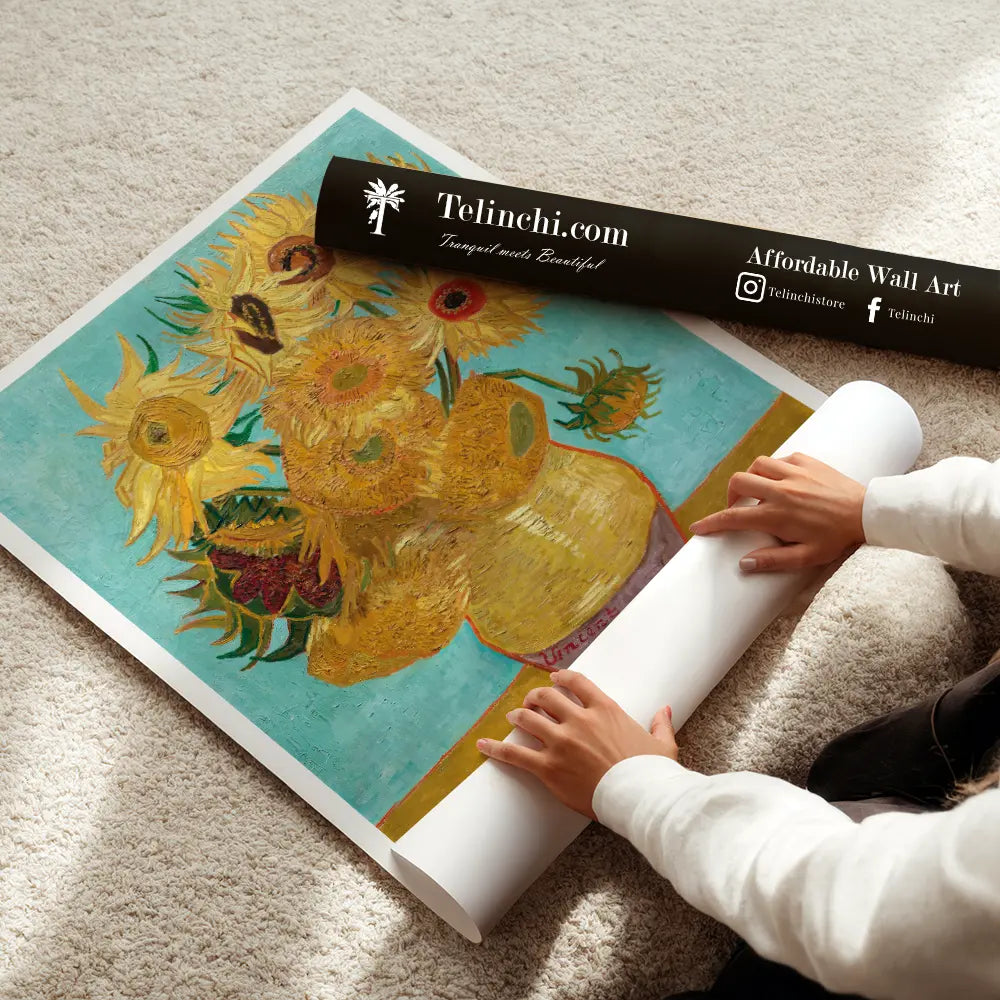 Van Gogh’s iconic "Sunflowers" series captures the vibrant beauty of sunflowers in a vase. This painting is a tribute to nature and symbolizes joy, hope, and friendship. The textured brushstrokes and warm yellows embody Van Gogh’s emotive style and his connection to the natural world.