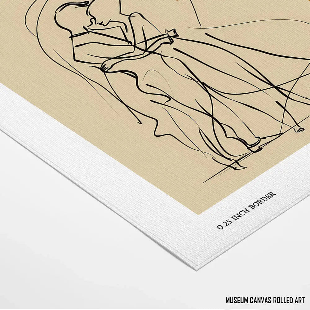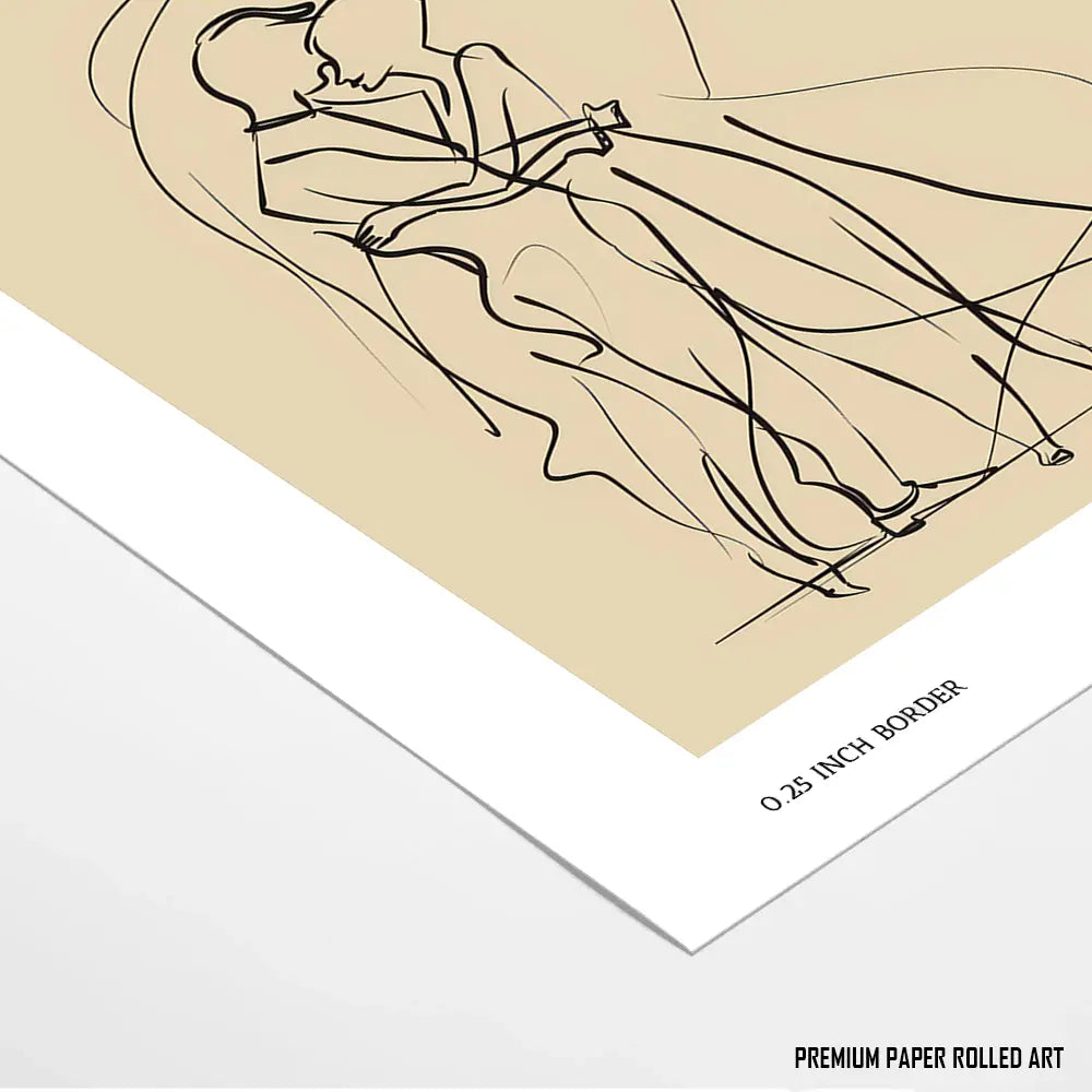 A fluid line art illustration of a romantic embrace, evoking tenderness and connection.
